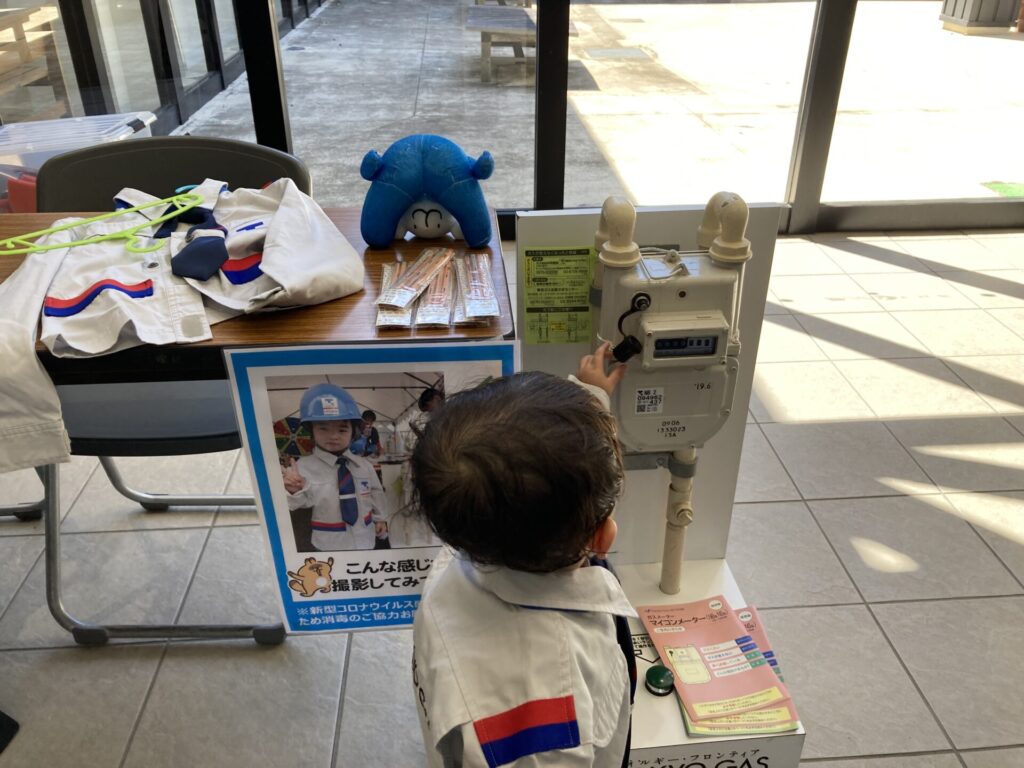 ご参加いただいたお子さまたちは制服の着用し、ガスメーターの復旧作業を体験しました。