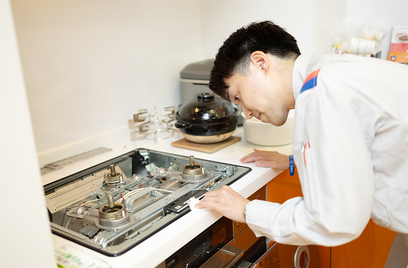定期的な点検で安心社内資格保有者がガス機器の点検・簡易清掃を行います。定期的な点検・お手入れで不具合の早期発見や予防ができ、安心してガス機器をお使いいただけます。