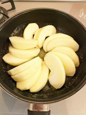 ホットケーキミックスとフライパンで作る簡単ケーキ。アールグレイの香りとりんごが良く合います。