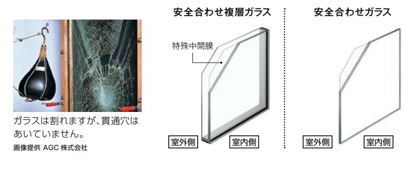 防犯性を高めるなら、防犯特殊膜を施したガラス破り対策に有効なガラスもあります。