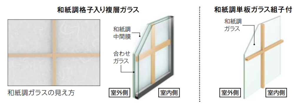 和の風情が漂う、障子紙を思わせるガラスもあります。