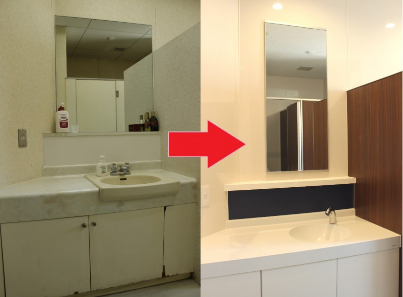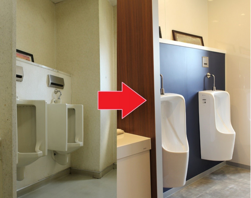 今回は男女両方のトイレを全面リフォーム!ガラッと雰囲気が変わり、キレイで使いやすくなったトイレに、スタッフ一同とても喜んでいます。