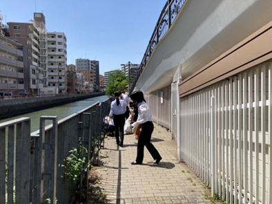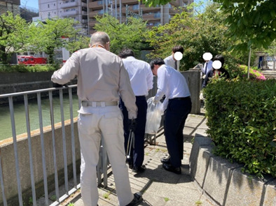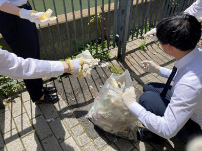 4月にはフレッシュで元気いっぱいの新入社員が入社し、SDGs啓蒙活動の一環として清掃に取り組みました。4月にも関わらず初夏を感じる暑さの中、打ち解け始めた同期の社員たちも熱心にごみを拾っていました。
