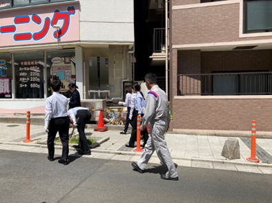 社員の有志メンバーが集まって月1回程度、事業所周辺を清掃しています。