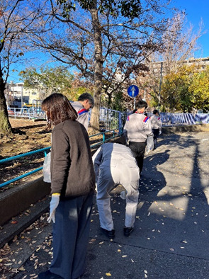 公園に行く道と帰るまでの道の途中でも歩行者や車両に注意しながらごみを拾いました。