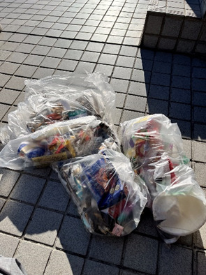 約30分の活動でも袋いっぱいのごみが集まりました。
