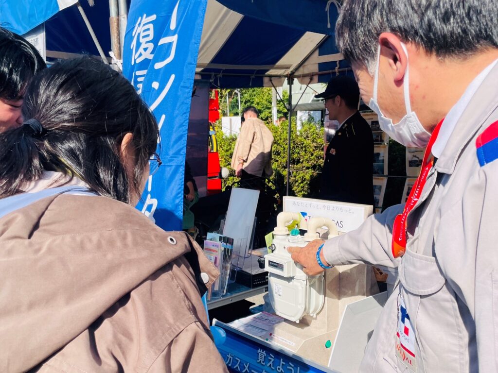 当社は「災害時ガスメーター復旧体験」ブースにて災害でガスが止まってしまった場合のガスメーター復旧方法と、ポータブル電源の使い方をご案内しました。