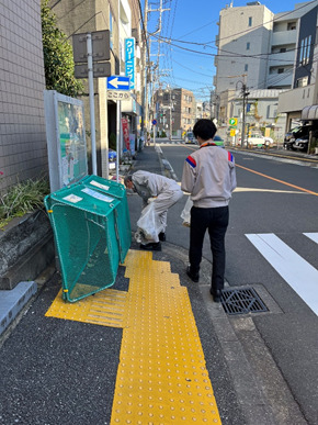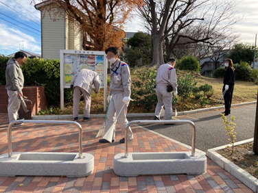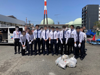 研修の一環として、新入社員同士や他の社員との交流も兼ねて、近隣の清掃活動に参加しています。