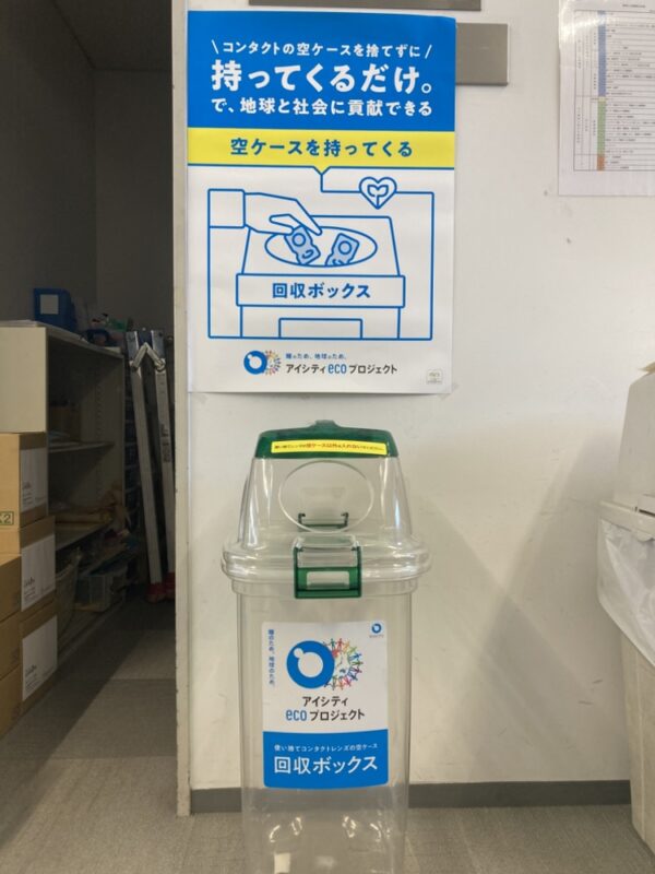 本年度より、当社では社内SDGs活動として、HOYA株式会社アイケアカンパニーのブランド アイシティによる使い捨てコンタクトレンズの空ケースを回収しリサイクルする「アイシティecoプロジェクト」に参加し、環境保全に取り組んでいます。