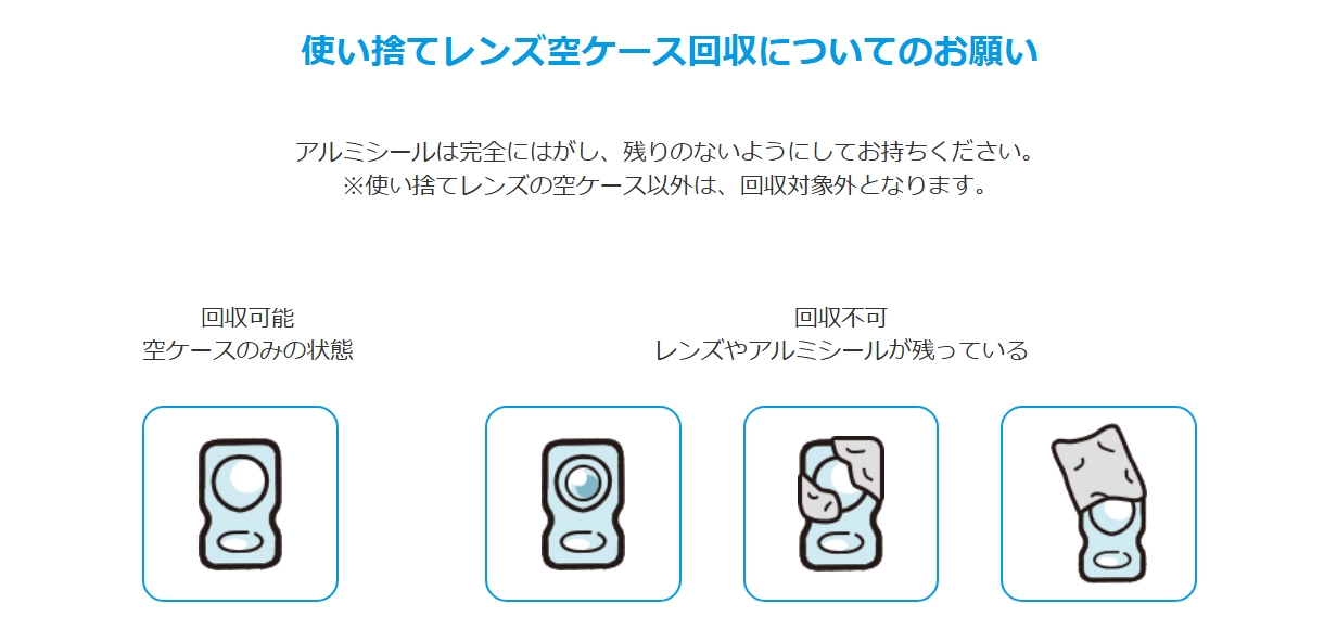 コンタクトレンズを販売しているアイシティが実施する「アイシティecoプロジェクト」は、使い捨てコンタクトレンズの空ケースを回収・リサイクルすることで、CO₂排出量の削減と資源の有効活用に取り組んでいます。