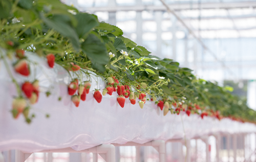 パーク内の「STRAWBERRY FARM(ストロベリーファーム)」は、徹底した温度・湿度管理で365日イチゴ狩りが楽しめる画期的な施設!