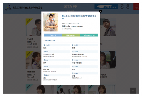 今回新しく作ったコーナーのひとつが【働く社員を知る】。