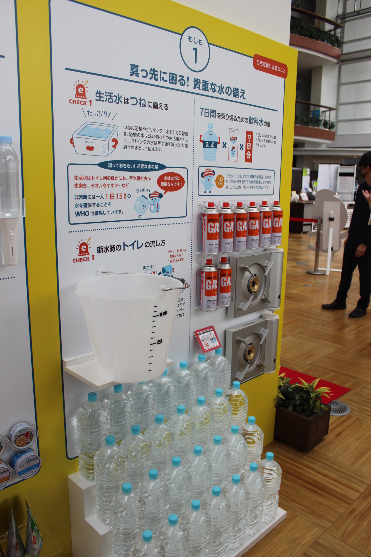 災害時に自宅で生活するのに必要なものを実物で展示しており、小中学校などの教育の場としてもご活用いただけます。
