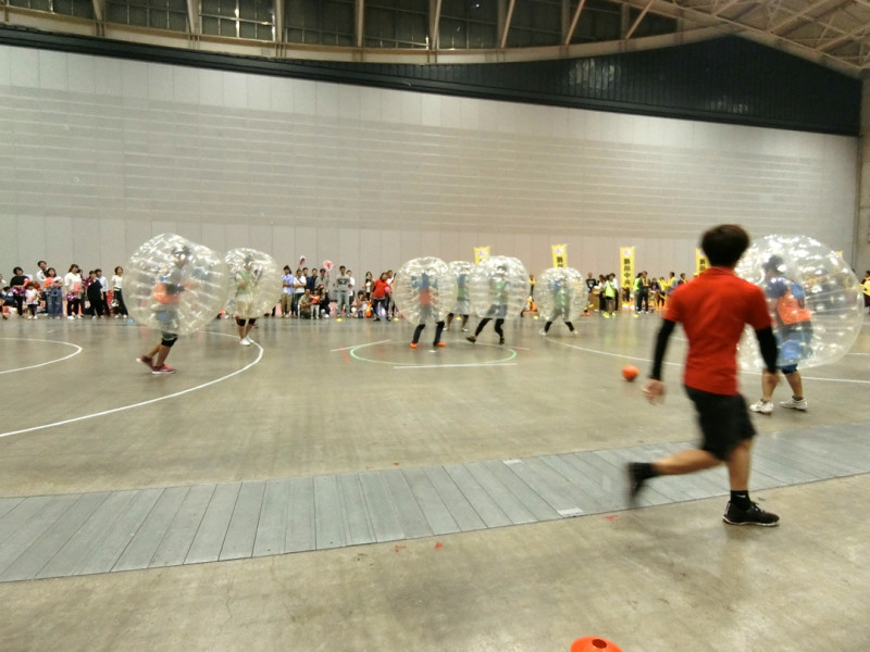 玉入れやバブルサッカー、綱引き、大玉転がしなど。