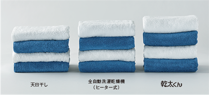 「乾太くん」は強い温風をたっぷり送り込むので、タオルの繊維が根元から立ち上がり、ふんわりした仕上がりになります。