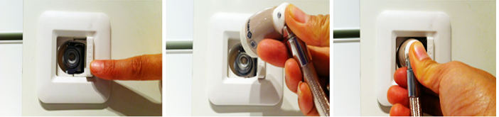 (1)ガス栓横の「取りはずしボタン」を押し込みます。