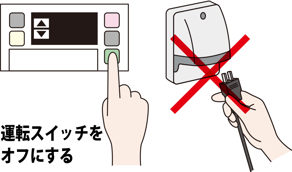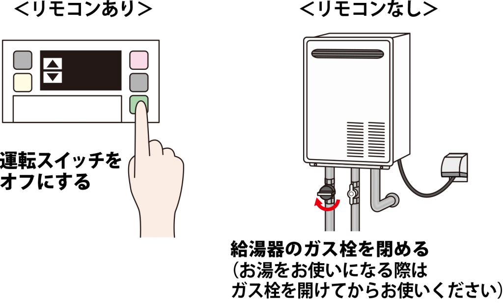 ※給湯器の電源プラグはコンセントから抜かないでください。