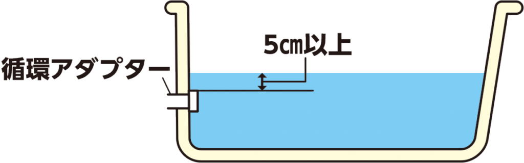 (注1)浴槽の水は、循環アダプター上部より5cm以上ある状態にしてください。