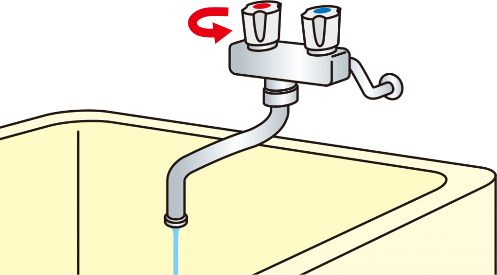 ③お湯の出る蛇口から水がでるようになったら、給湯器やその配管から水などが漏れていないかを確認してからご使用ください。