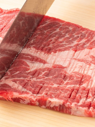 牛肉は包丁の背で両面をたたき、大きめの一口大に切る。塩、こしょうをもみ込んでから薄力粉をまぶす。