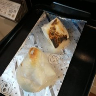 角餅は、マルチグリルのプレートパンに並べ、調理モード[焼く]火加減・強で5~7分加熱する。焦げ目をしっかりつけて焼く。