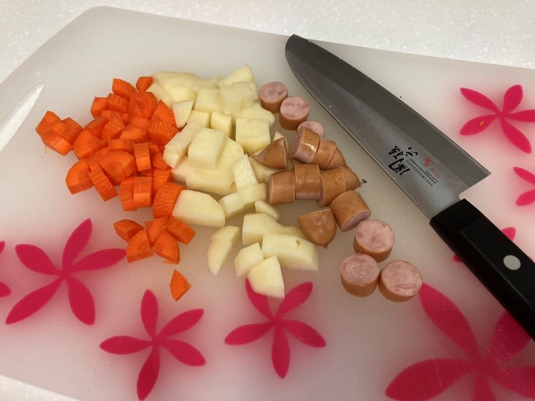 火が通りやすいようになるべく小さく刻むのがポイントです。
