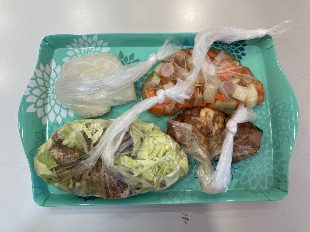 ⑤鍋からポリ袋を取り出して器に袋ごと盛り付ける。