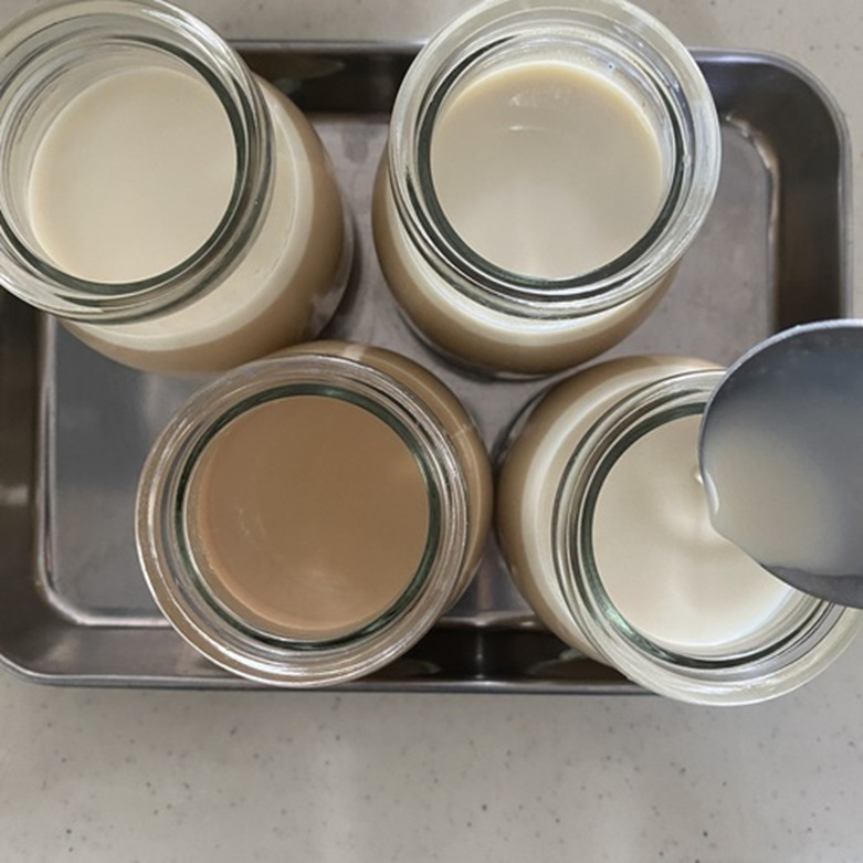 茶こしで濾してから器に注ぎ、冷蔵庫で2〜3時間冷やし固める。
