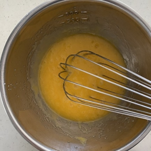 ボウルに下準備したバター、グラニュー糖、塩を入れ泡立て器ですり混ぜる。