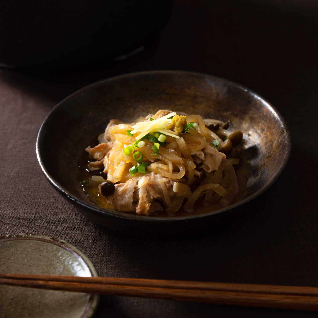 ▼03が煮込み終わったら、小ねぎと針しょうがをちらす。器に取り分け、好みでゆずこしょうを添える。