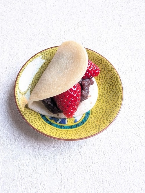 あんこは6つに分け、いちごはヘタを取る。 生地であんこといちごを包む。