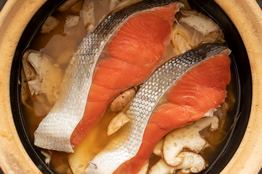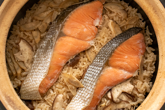 本日ご紹介するのは長谷園「かまどさん」を使った「鮭の茶飯」のレシピです。