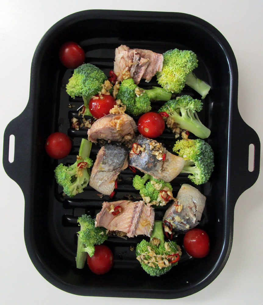 サバ缶は水を切り、ブロッコリーは小房に分けます。