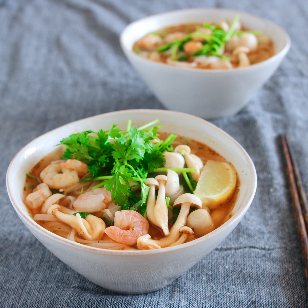 チューブ調味料がメインなのに、味わいが本格的なトムヤムヌードル。麺はフォーがなくても中華麺やそうめんなど、お好みでどうぞ。