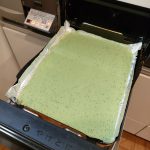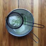 上新粉・薄力粉・抹茶パウダーをふるう。