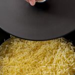 生クリームと塩をボウルに入れて泡だて器でよく混ぜ、3.に注ぎ入れて、上にシュレッドチーズをのせる。