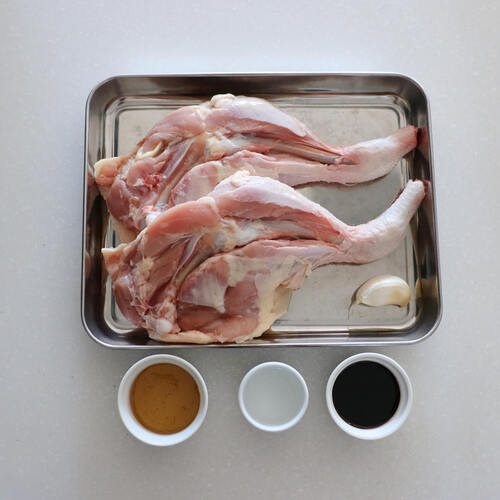 にんにくはすりおろし、Aの他の材料と共にバットに入れ、1のもも肉も入れて30分以上置いておく。