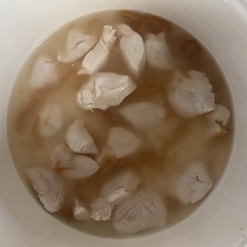 鍋に水を入れて沸騰させる。梅干しとささみ、鶏ガラスープの素、酒を入れ、ささみに火が通るまで弱火で2分程加熱する。
