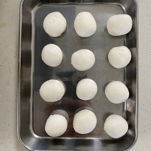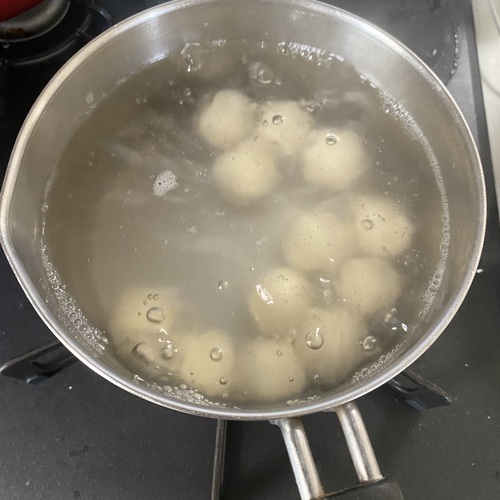 鍋に湯を沸かし⑨を入れる。浮いてくるまで中火で茹でる。