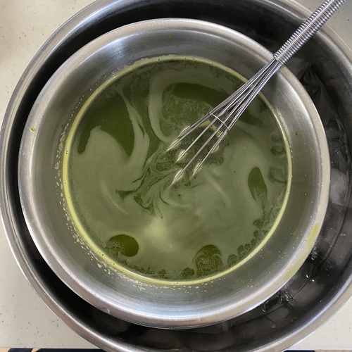 ③をボウルに移し、氷水に浸ける。たまに混ぜながらとろみが付くまで冷やす。