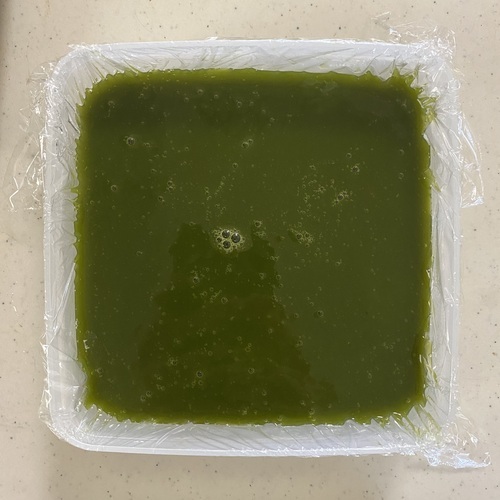 器にラップを敷き、その上に流し入れる。冷蔵庫で半日以上冷やし固める。