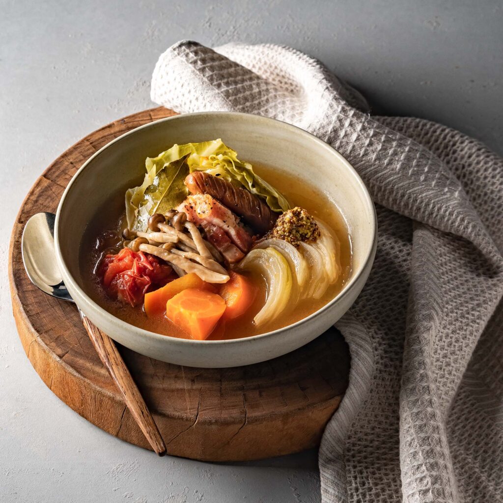 たっぷり野菜から出る水分だけでじっくり煮込んだ無水ポトフ。