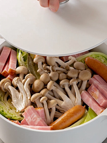 無水調理とは、その名の通り水を使わない調理法のこと。「野菜を茹でるとビタミンやミネラルが水に溶けて流れてしまう」と言われることがありますが、無水調理なら栄養を逃すことがなく、素材の旨みをギュッと凝縮することができます。