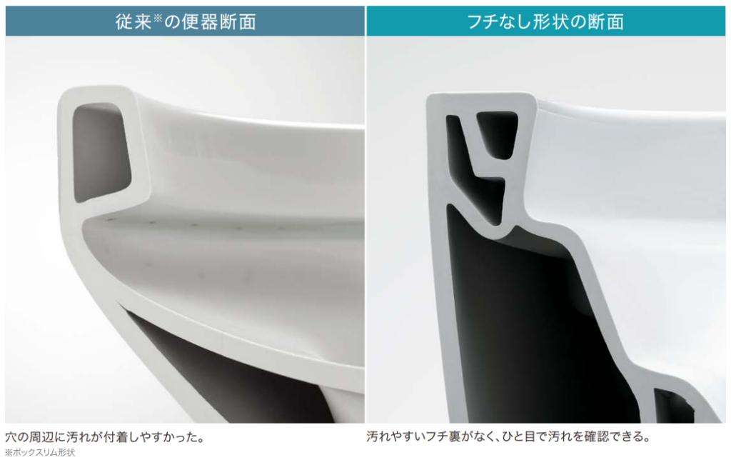 汚れのたまりやすいフチ裏をなくした独自開発の形状で、掃除が楽になります。