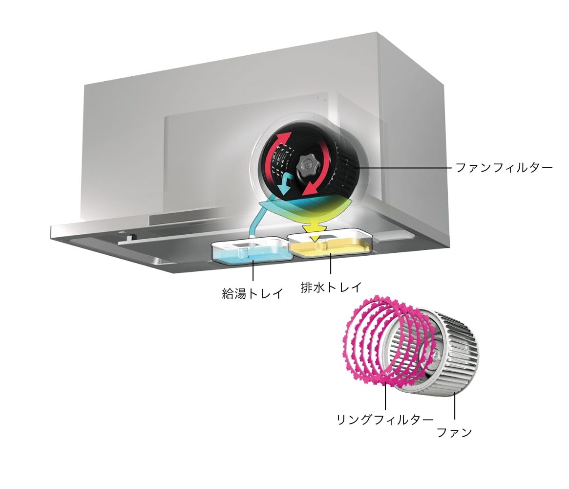 ボタン一つで自動洗浄。ファンフィルターのお手入れは約2か月に1回で済みます。(オプション対応)