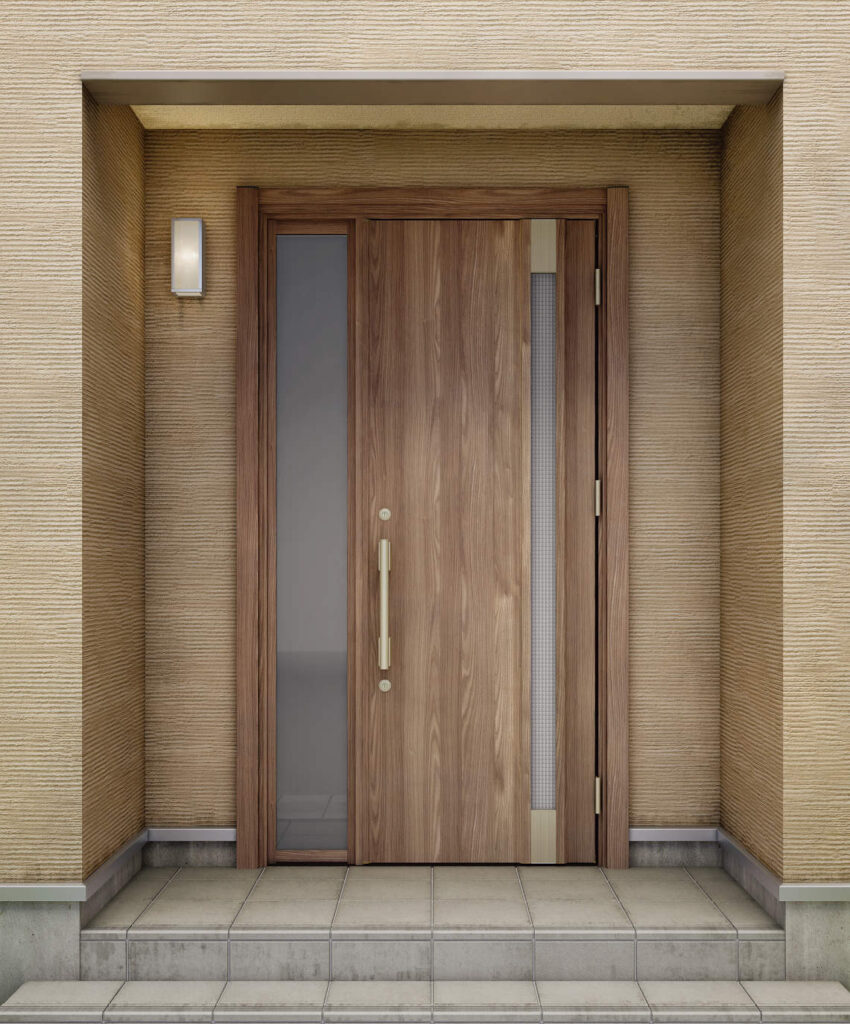 スリット窓や欄間(ランマ)などを組み合わせた「採光デザインドア」や、電気錠を選ぶことができます。さらに国土交通大臣認定の、防火性能を有したドアもラインナップしています。