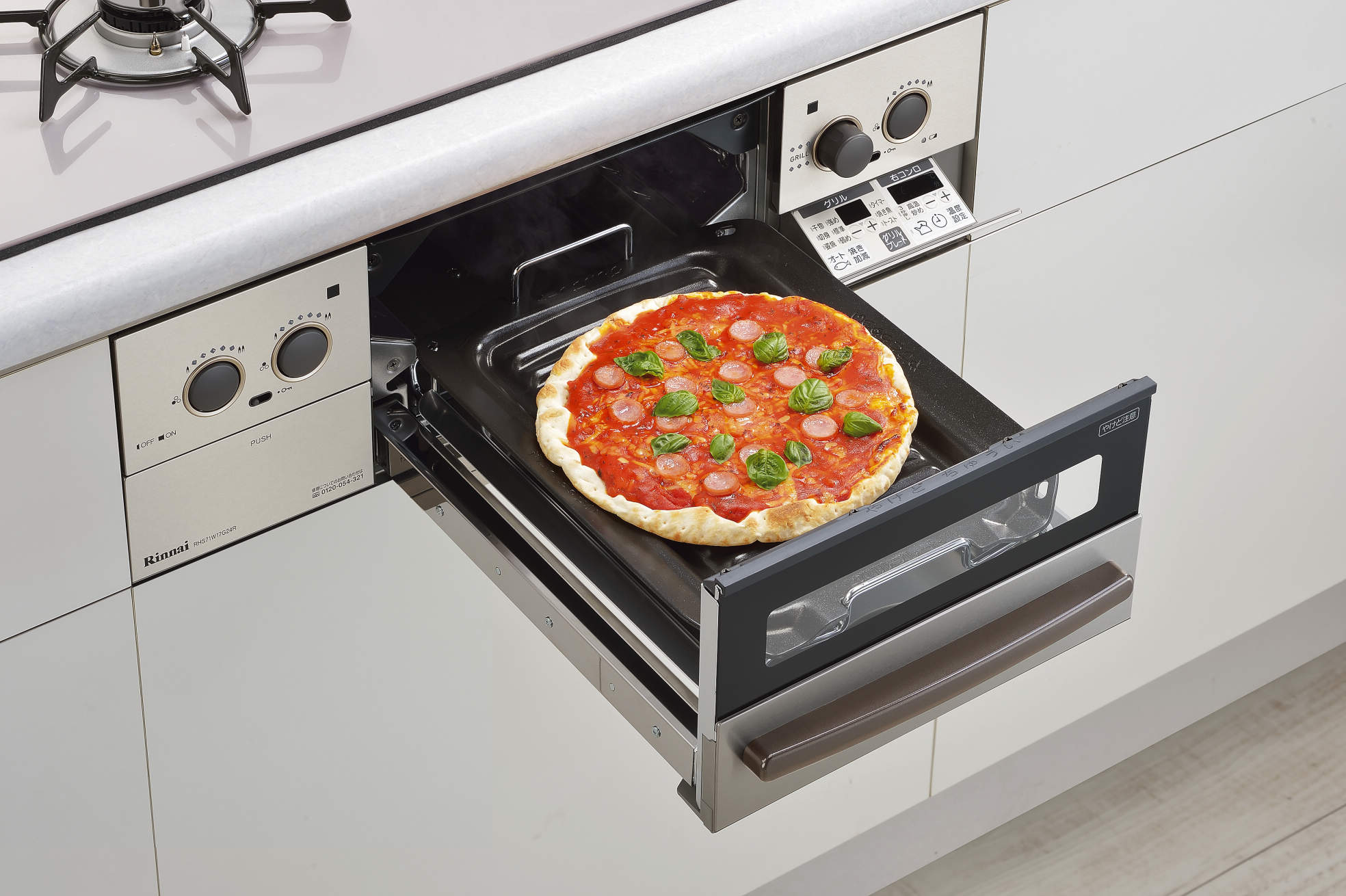 焼き網の代わりに付属のココットプレートでグリル料理。焼き魚はもちろん、トースト、ノンフライ料理、ピザ、揚げもののあたため直しも、スイッチひとつで自動調理。充実の機能でグリル調理が広がります。