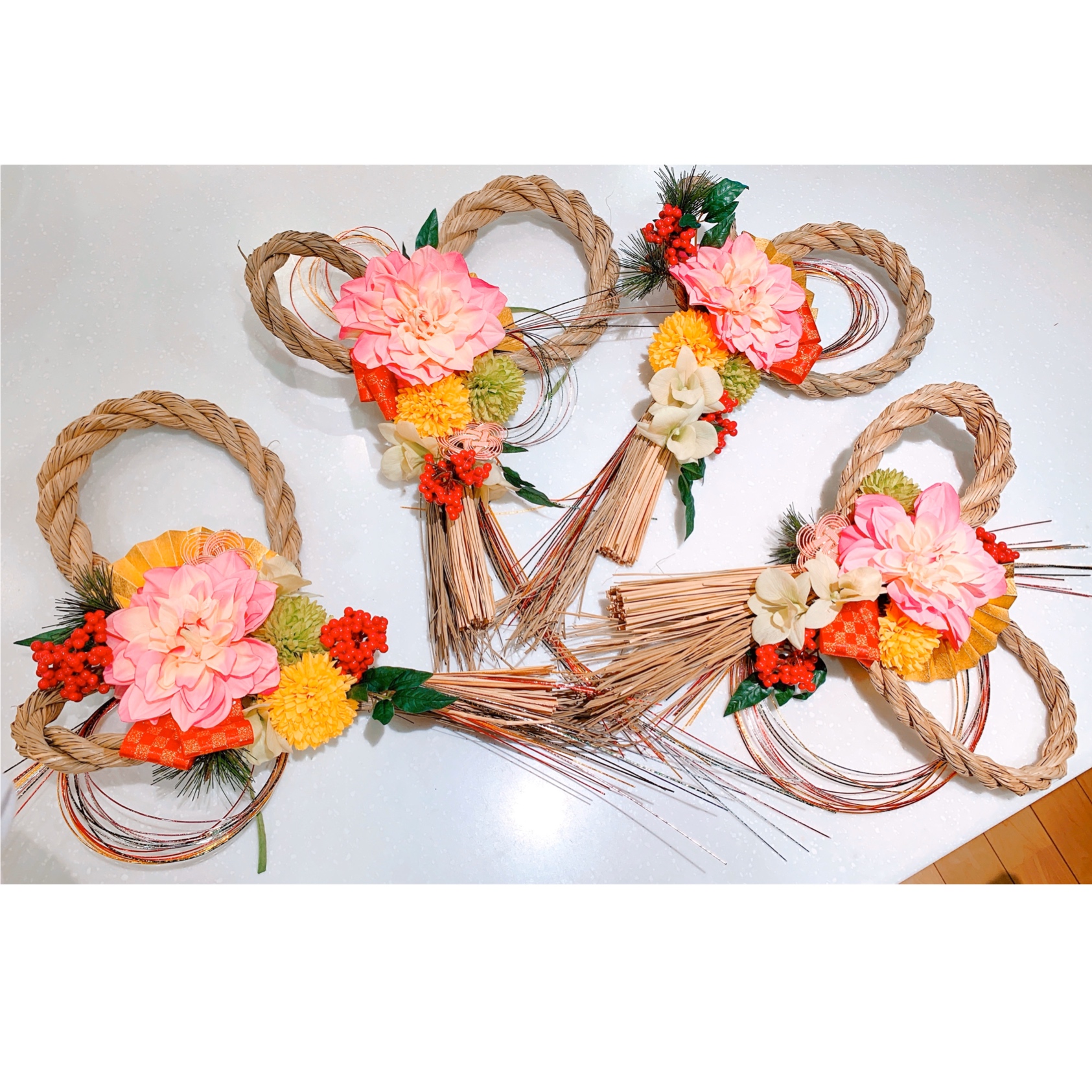 お花をつける位置や縄の形によってそれぞれ雰囲気が異なり、個性あふれるとてもすてきなお正月飾りが完成しました☆