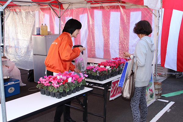 特に、今回大好評だったのが会員さま向けのシクラメンのプレゼントです。ヨコエネのTYEロイヤルクラブにご加入いただいている会員さまには、毎年シクラメンを1株プレゼントしています。赤・白・ピンクと色とりどりのお花が揃っているので、皆さん選ぶのに迷っておられました♪たくさんのシクラメンをご用意していましたが、初日でほとんどのお店のお花がなくなってしまったほどの盛況ぶりでした!