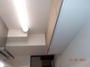 また、天井と壁を壊して貼り換え、内装も綺麗に仕上げました。床には一面フロアタイルをはり、キッチン全体の一体感を演出しました。